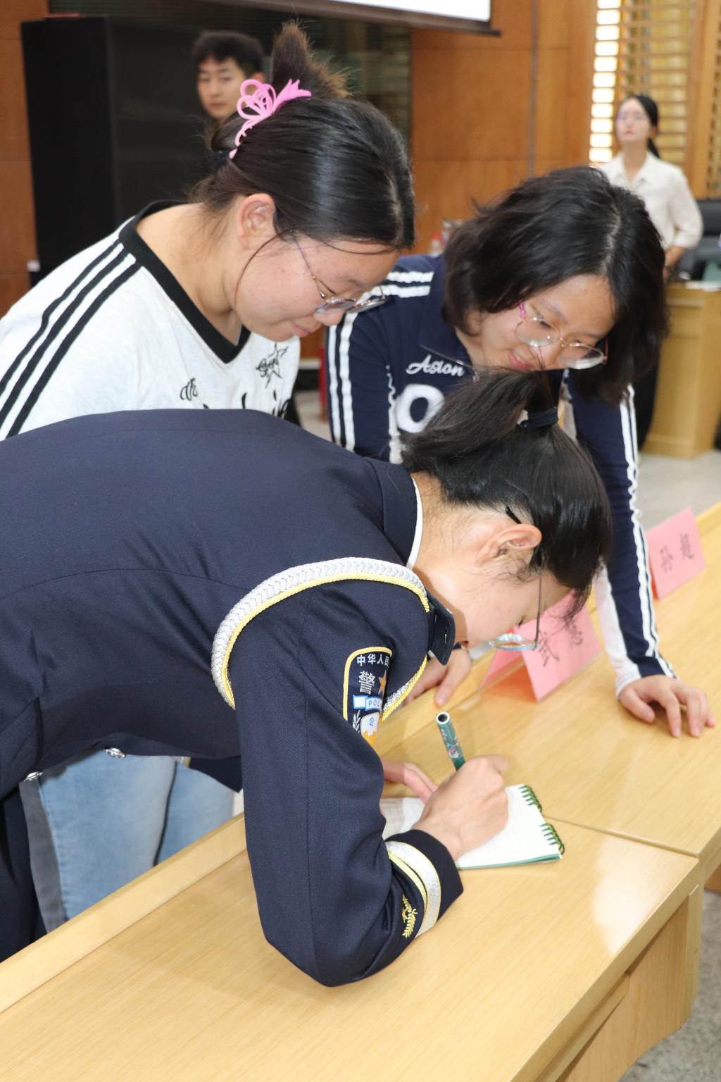 参加此次课程的同学一致认为,这是一场有理想、有温度、有情感、有厚度的大思政课。课程之中,掌声响起30余次,同学们数次哽咽,多次落泪。通过此次学习,同学们不仅对移民管理队伍忠诚奉献、卫国戍边的英雄风貌致以崇高敬意,更通过一个个鲜活生动的案例,深化了对全面深化改革、推进国家治理体系和治理能力现代化的认识。2025级经济学专业王姿淇同学表示,“今天让我触动最深的话就是‘既然有些事总需要有人去做,那我愿意去做’。作为新时代的中国青年,我愿意为理想的世界燃烧自己的青春,清澈的爱,只为中国。”2025级行政管理专业吴杰慧同学表示,“这节课给了我太多感动和思考,我要像英模们一样,在广阔的祖国大地上驰骋担当,以青春之笔写就盛世华章,为祖国建设贡献力量”。2025级新闻专业欧阳欣桐表示,“那一句‘我们守的是边关,更是民心’一直萦绕在我耳边。我要努力在最美的青春年华为祖国、为人民奉献自己的微光”。课程结束后,大家久久不愿散去,围绕在6位授课警察身边,畅谈着对祖国边关的好奇与向往。大家纷纷表示,在今后的学习生活中,会把所学所感所悟融入学习生活中,为强国建设、民族复兴伟业贡献青春力量。